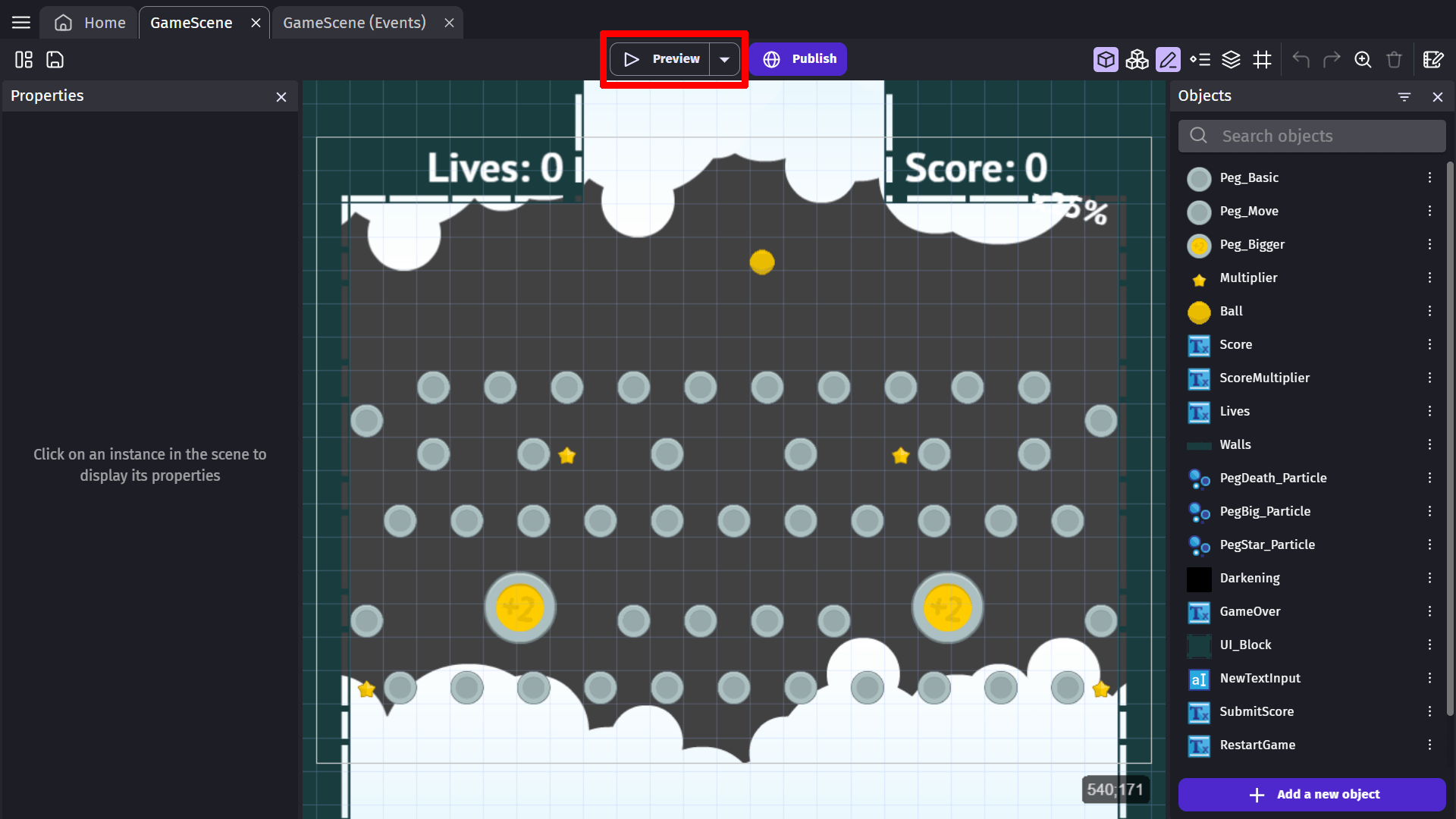 This is especially useful when you want to make tweaks to your game, like changing the parameters of effects or the properties of the behavior of an object, and see the result immediately. It's also useful to check how your events are working without restarting your preview from the beginning.