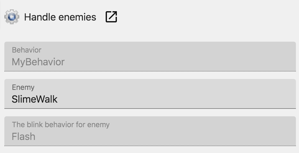 And now the function knows that the enemies have a behavior called "Blink"! Let's use the action to make them blink: